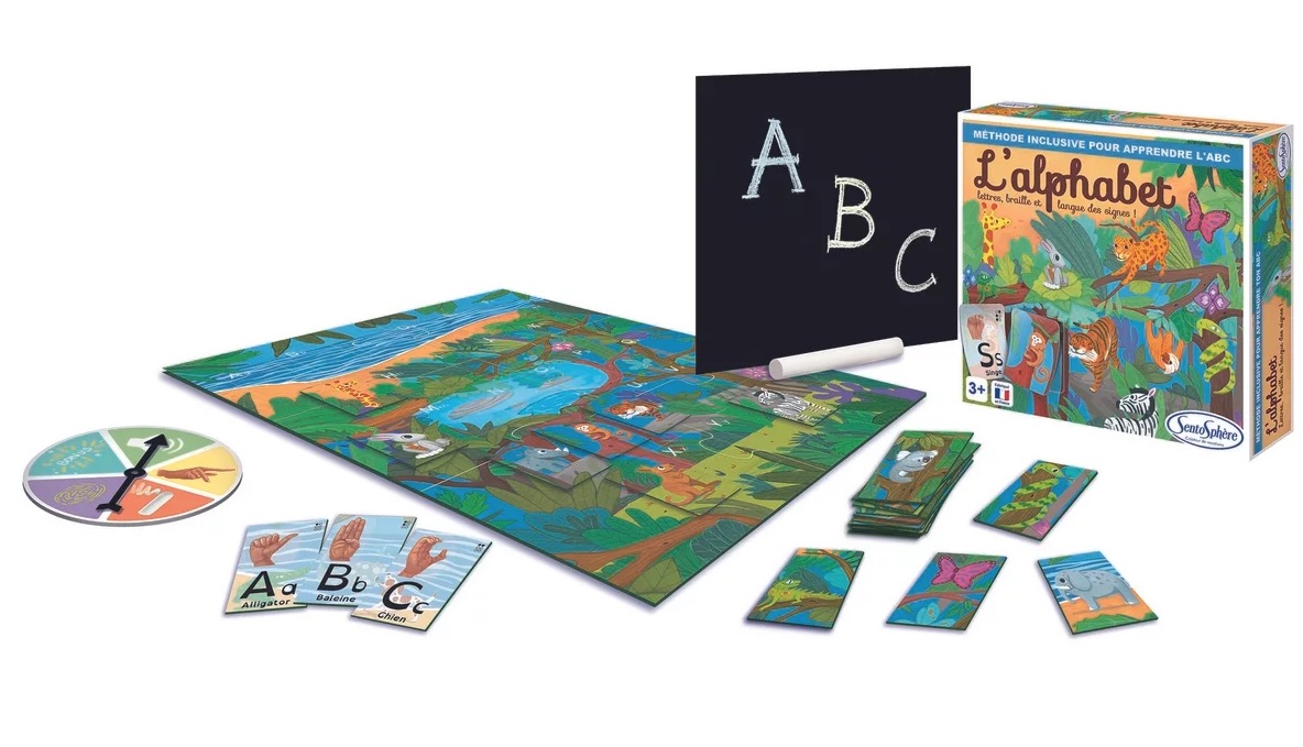 Dès 3 ans, les enfants pourront découvrir l'alphabet, le braille et la langue des signes avec une méthode ludique et inclusive. Pour cela, ils se transforment en explorateurs pour découvrir les animaux qui se cachent dans la jungle du plateau. Grâce à plusieurs challenges, comme écrire la lettre sur l'ardoise, la reconnaître au toucher, la reproduire dans la langue des signes ou prononcer le son de la lettre.