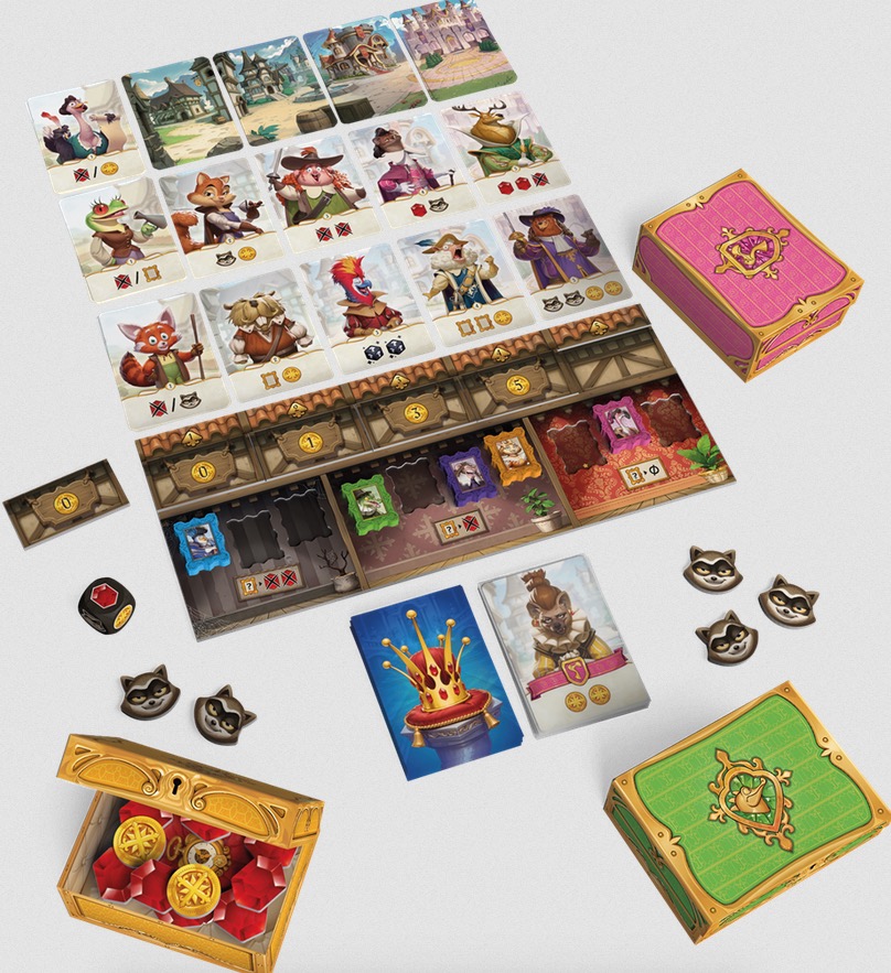 - À chacun des quatre tours, les cartes mercenaires s'ajoutent et la pioche augmente, augmentant les effets qui perturberont les stratégies de vos adversaires. À la fin de la partie, le joueur le plus riche sera couronné et dirigera le royaume !