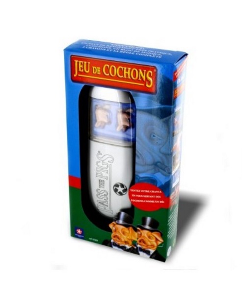 Faites rouler les deux amusants petits cochons autant de fois que vous l'osez pour ramasser des points lorsque c'est votre tour. Mais si vous forcez la chance et que vous réalisez un "cochon nul" ou un "bon jambon", vous les perdrez tous; Le premier joueur à réaliser un score de 100 points remporte la partie !