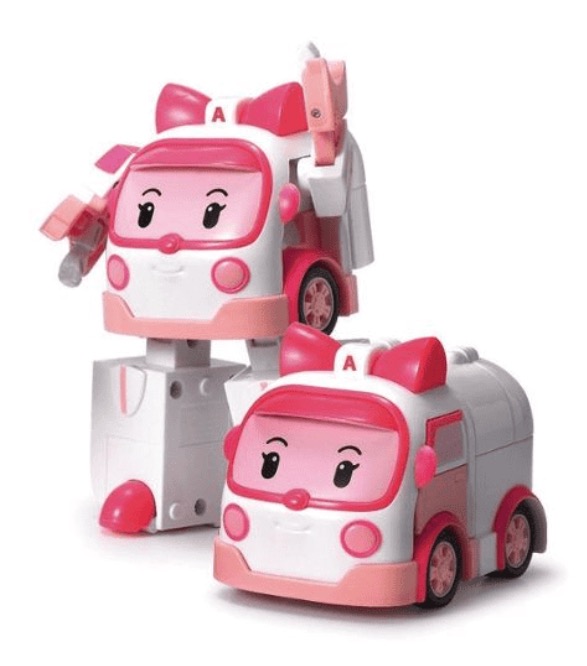 Le concept phare de la série ! 2 en 1, le véhicule Ambre se transforme en robot en un tour de main ! Articulés, ses bras sont mobiles. Taille : 10cm environ.