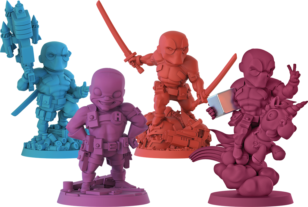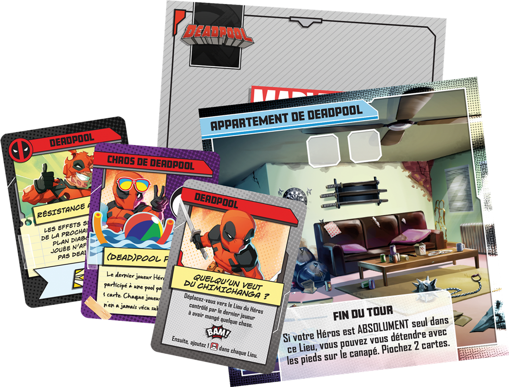 Préparez-vous pour le bon, le mauvais et le chaotique neutre !- Deadpool est une extension pour Marvel United qui propose trois délicieuses versions du Mercenaire disert… et Bob, son acolyte pas si loyal. Ces personnages très singuliers peuvent endosser le rôle de Héros ou de Vilain et n'ont pas leur langue dans leur poche. Non seulement Deadpool est un Héros qui brise le quatrième mur et un Vilain invincible, mais il peut aussi débarquer dans la partie en tant que Défi et semer le chaos partout où il passe sur le dos de sa licorne en peluche !