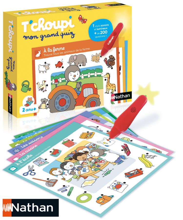 Un jeu électronique de questions-réponses pour découvrir l'univers de T'choupi. L'enfant apprend à associer les pièces aux objets de la maison, les couleurs, les quantités…A l'aide du stylo l'enfant répond aux questions. Si la réponse est bonne, le stylo s'allume! 12 thèmes.