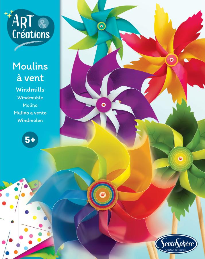 De jolis moulins à vent bicolores à fabriquer avec du papier imprimé recto-verso.