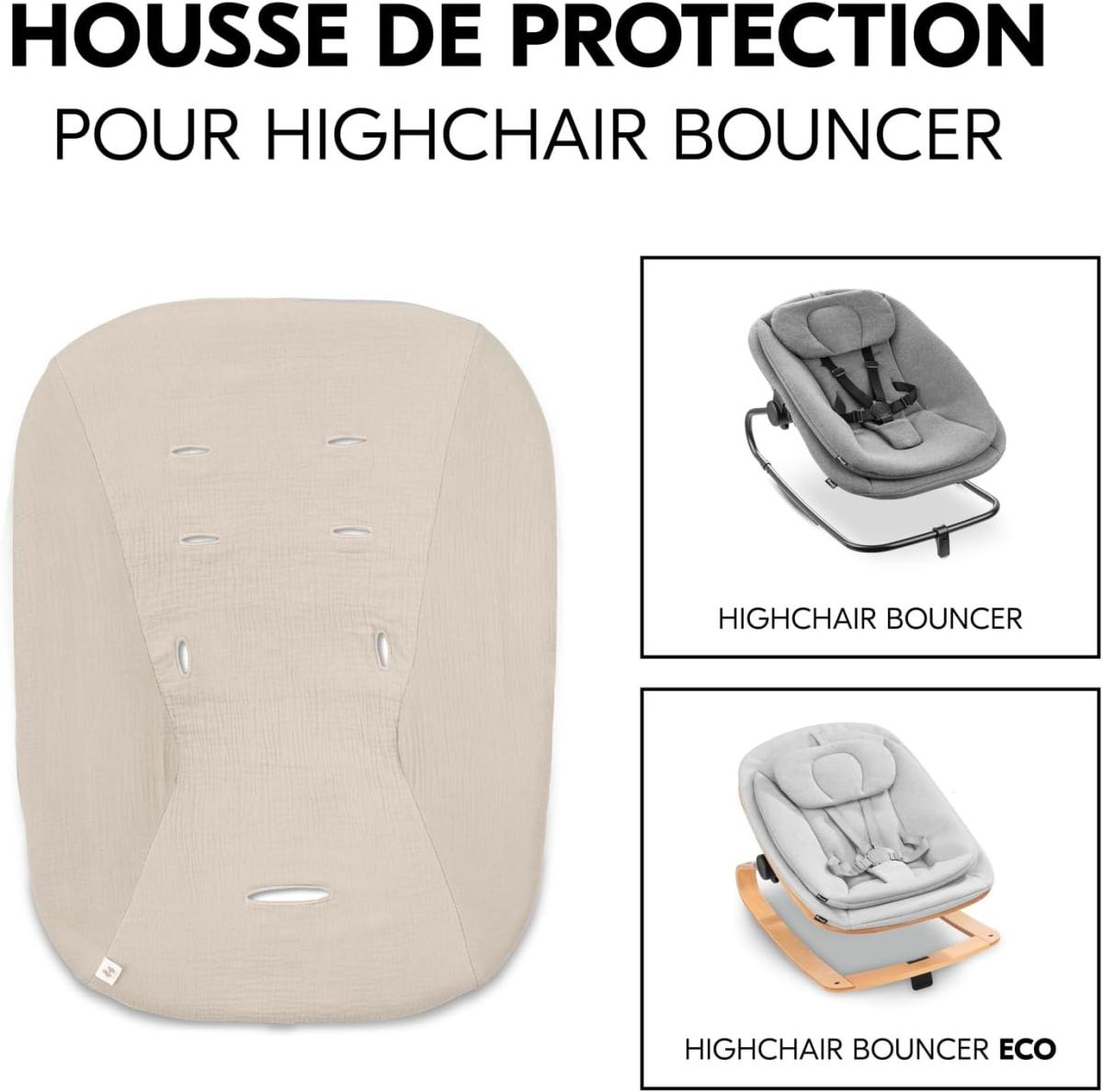 Housse de protection respirante pour Highchair Bouncer et Highchair Bouncer Eco Souvent des taches sur le transat balancelle ? Aucun problème ! Avec la housse de protection. la housse originale du Highchair Bouncer et Highchair Bouncer Eco hauck reste toujours propre. La housse douce en coton mousseline respirant assure le confort de bébé : il est au chaud en hiver. bien au frais en été. Facile à fixer et à nettoyerGrâce à l'élastique et aux fentes pour harnais. la housse est adaptée aux transats Highchair Bouncer et Highchair Bouncer Eco hauck avec harnais à 5 points. Ainsi. bébé est toujours bien attaché. Bouillie pour bébé. crachats et plus encore ? Aucun problème ! La housse peut être lavée en machine à 60°C et est rapidement prête à l'emploi après un cycle doux au sèche-linge. Superbe choix de couleurs modernes et individuellesLes bébés grandissent vite ! Utilisez la housse avec ou sans le réducteur de siège du transat. Le compagnon idéal au quotidien. Disponible en différentes couleurs. Adaptez le transat balancelle à vos goûts : idéal aussi pour les frères et surs ou en cas de changement.