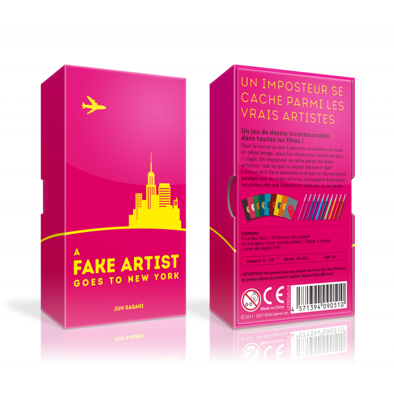 Chacun leur tour, les artistes tracent un trait sur l'oeuvre commune en respectant le thème imposé. Problème : l'un d'eux n'a aucune idée de ce qu'il est en train de faire !!! Arriverez-vous à griller l'imposteur qui se cache parmi vous ? Ou ce dernier sera-t-il suffisamment malin (et doué...) pour tous vous bluffer ? A Fake Artist Goes To New York est le party-game simple, rapide, efficace, et drôle par excellence... À vos pinceaux !