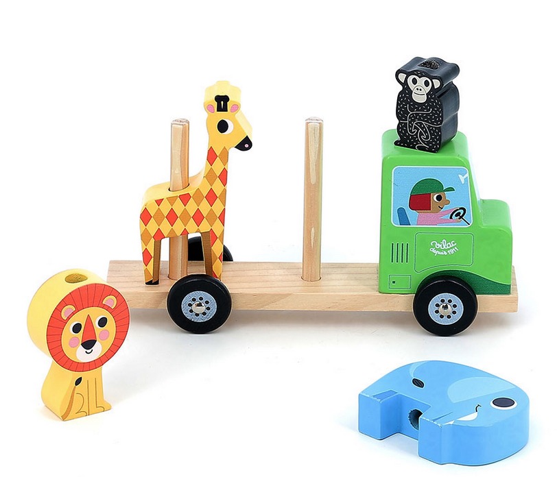 Découvrez ce jeu d'éveil en bois dessiné avec malice par Ingela P.Arrhenius. Votre enfant va craquer pour les figurines animaux de la savane, le camion vert, et les multiples associations possibles sur la grande remorque. C'est parti pour un safari plein de surprises. Les 4 figurines en bois peuvent s'empiler les unes sur les autres et être utilisées en jeu libre par votre enfant.